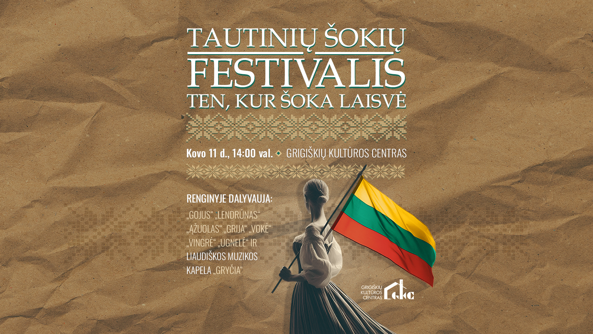 Tautinių šokių festivalis, skirtas Lietuvos nepriklausomybės atkūrimo dienai paminėti. Renginyje susitiks įvairūs šokių kolektyvai ir liaudiškos muzikos atlikėjai, puoselėjantys lietuvių tradicijas, kultūrą ir bendruomeniškumą.